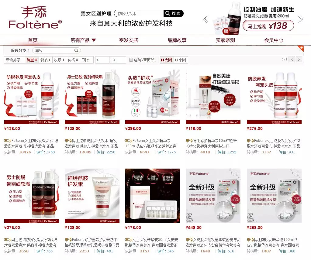 事实上,除了馥绿德雅,不少来自欧洲的高端防脱品牌近两年在中国市场表现活跃,典型如热门代购品牌德国欧倍青(Alpecin)、有50余年历史的意大利专业防脱品牌丰添(Foltene)。
