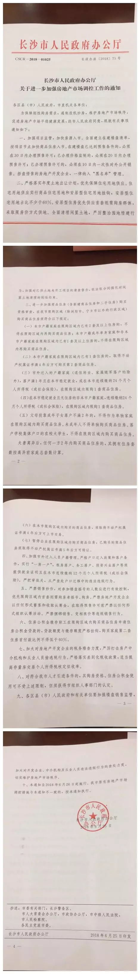 根据《通知》,长沙房地产市场将从项目监管、土地出让、购房资格、户籍管理、严禁炒作等方面进行全面调控,规定本市户籍家庭在限购区域内已有1套住房的,取得不动产权属证书满4年后方可购买第2套商品住房;