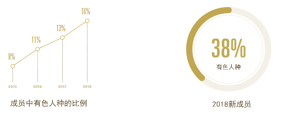 今年的受邀名单中,有38%为有色人种。如果受邀者均接受邀请,学院成员人数将增至9226人,而有色人种比例也将从2017年的13%上升至16%。