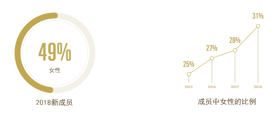 同时,新增成员中女性占到了49%,如果均接受邀请,成员女性比例也将从2017年的28%上升至31%。