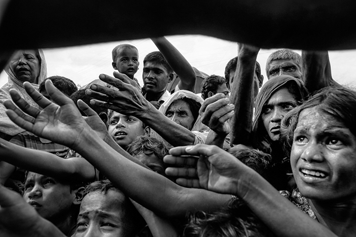 此外,孟加拉国摄影师Mushfiqul Alam获“最佳新人”奖。作品“The Great Exodus: People With No Land”关注的是罗兴亚难民危机。摄影师表示,这是一个众所周知但仍被低估的问题,虽然承认了危机,但依然无法掩盖这一极端种族清洗的恐怖程度。因拆毁房屋和强制疏散导致的难民数量已近百万。