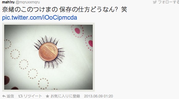 “取下来的假睫毛太难找地方放,暂且先这么着(笑)。弧度正好贴合!”