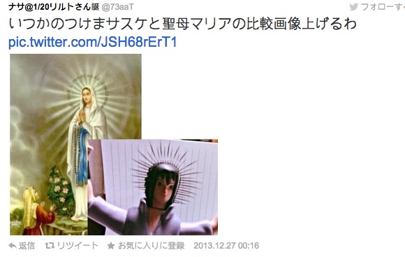 “把戴上假睫毛的佐助和圣母玛利亚比较了一下。”