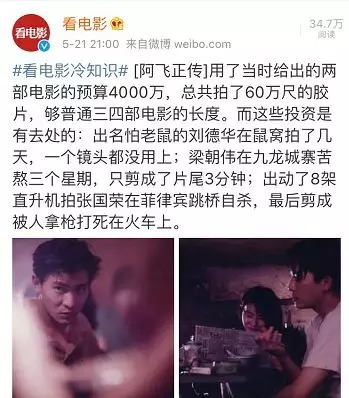 为什么[阿飞正传]投资如此巨大呢?1990年香港年度冠军,周星驰主演的[赌圣]票房也不过4123万港币。