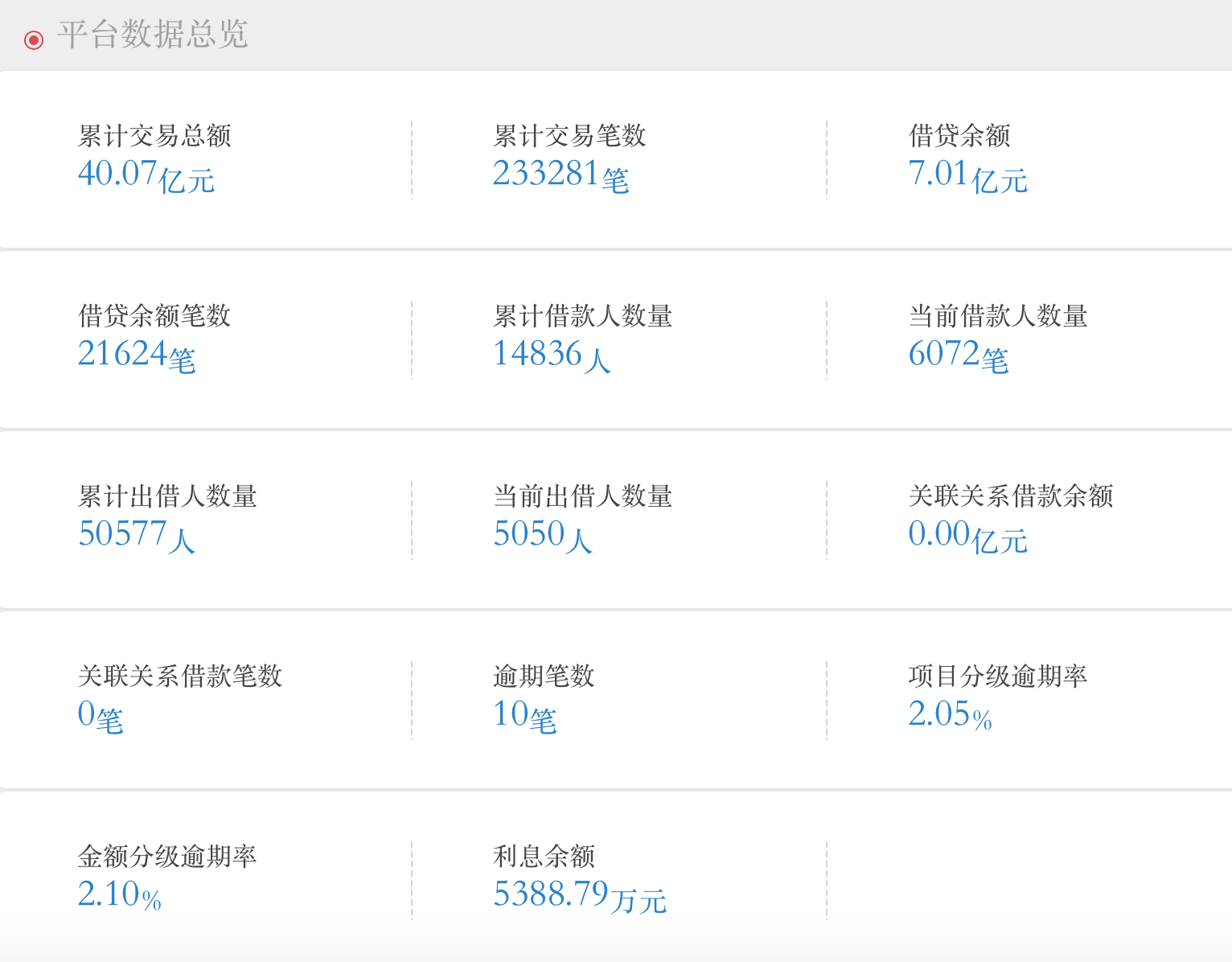 利基金融以及中瑞富信未披露交易数据,花果金融平台的运营数据显示,平台累计交易总额40亿元,借贷余额7亿元,逾期笔数10笔。