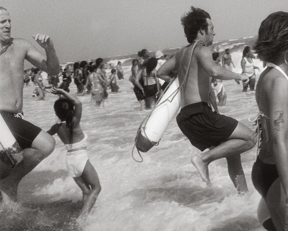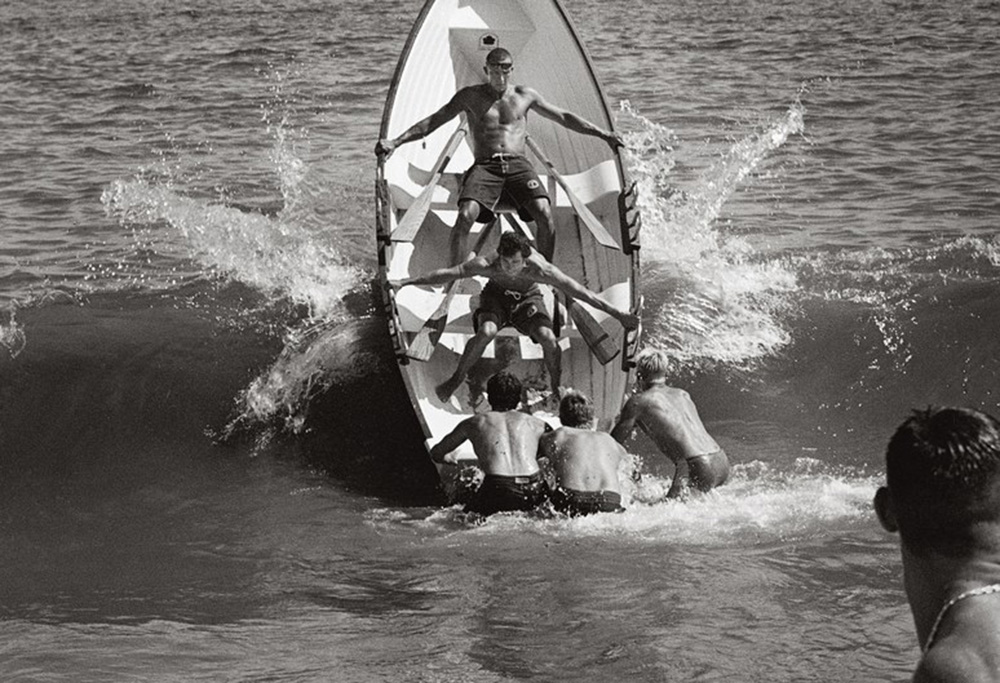 但总归会有需要采取行动的时刻,它们通常突如其来且风险极高。萨博所拍摄的救援场景一向是出人意料的——救生员抱着外表颇为有趣的救生浮筒拔腿冲入水中,其他人则在一旁伫立和围观。乍一看,浮筒倒更像是个在海里找乐子的奇葩装备了。