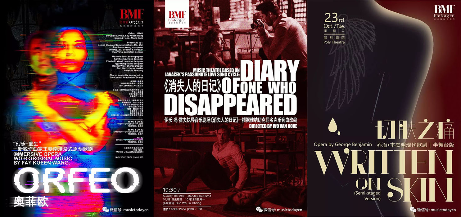 在10月21-22日,音乐节将推出根据捷克作曲家雅纳切克的声乐套曲改编的音乐剧场作品《消失人的日记》。10月23日,由英国著名作曲家乔治·本杰明创作的歌剧杰作《切肤之痛》将在保利剧院以半舞台版的形式上演。《切肤之痛》曾被多个欧美权威歌剧杂志评为年度最佳当代原创歌剧,也被称为21世纪以来欧美舞台涌现出的最优秀的当代原创歌剧之一。此次BMF上演的《切肤之痛》是该剧的亚洲首演。