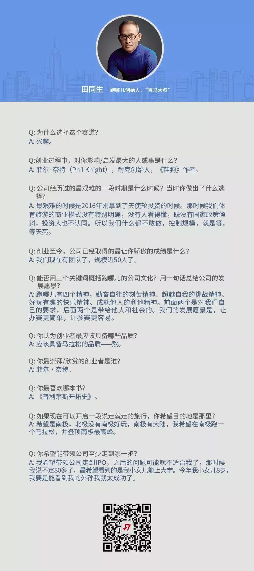他有些愤愤然,将原因归结于“他们没体验过”。“跑步这个事情,没体验过的就看不到,看不到就看不懂,不管是政府官员还是企业高管。”