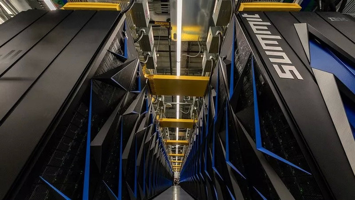 由IBM总包设计建设,目前在美国能源部(DOE)的橡树岭国家实验室(ORNL)运行的Summit超级计算机,在作为TOP500榜单基准的高性能Linpack(HPL)基准测试中以122.3 petaflops(每秒12.23亿亿次)的性能问鼎榜首。Summit超算有4356个节点,每个节点配备2颗22核的Power9 CPU和6颗NVIDIA Tesla V100 GPU。节点与Mellanox双轨EDR InfiniBand网络连接在一起。