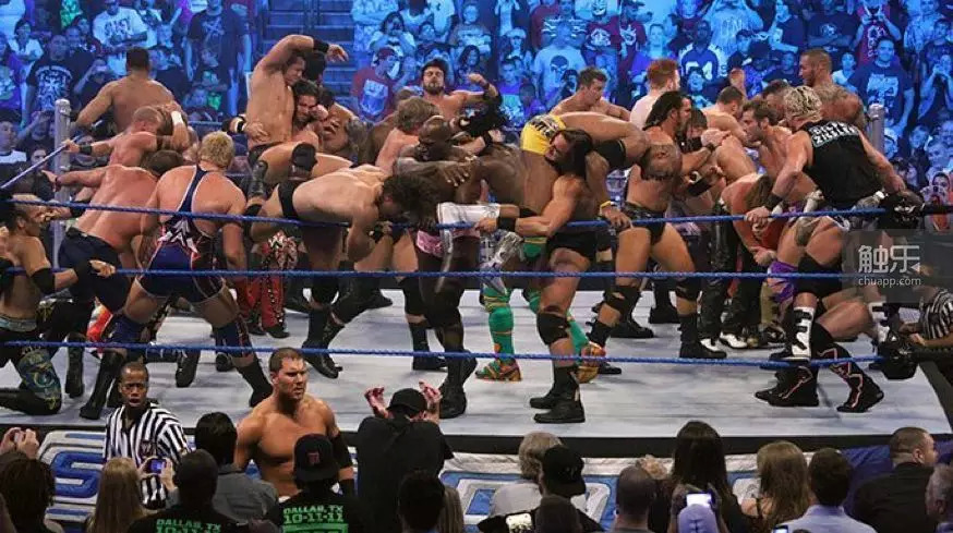 这种独特的娱乐性和竞技感是《大逃杀》的一大魅力所在,而这个特点在书名中便有所体现。小说原名“バトル ロワイヤル”,是以日文假名写就的“Battle Royale”。所谓的Battle Royale,本意是指美国职业摔角(WWE)中的一种比赛形式。和一般摔角比赛的一对一或两两互拼不同,Battle Royale中会有一大群人在擂台上乱打,互相淘汰至擂台上剩下一个人,这人就是冠军。