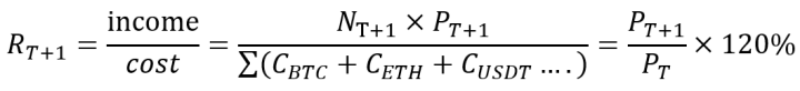 其中分子为各交易对的佣金成本,分母为T时间段FT的均价,