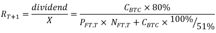 以 BTC 为本位举例,散户的分红取决于 FT 释放速度、FT 价格等多个难以强假设的变量,所以我们先从最简单的情况开始看: