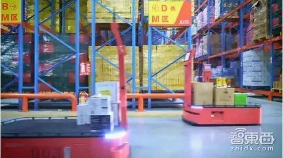 在京东的无人仓中,主要有六种仓储机器人,依次为:Delta型分拣机器人、叉车T20、分拣AGV、智能搬运机器人AGV、SHUTTLE货架穿梭车、六轴机器人6-AXIS。在这六种仓储机器人中,京东称SHUTTLE系统完全由京东自主研发。