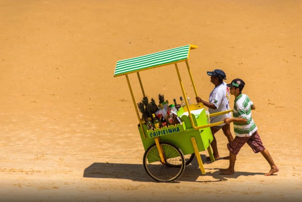Água de Coco 在巴西的沿海地区,新鲜的椰子随处可见。小商贩在制作这种饮品时,要切开新鲜的椰子,并插入吸管。新鲜清淡的椰子水绝对值得品尝!在喝过果汁后,你还可以刮椰子内部的椰肉作为小食食用。