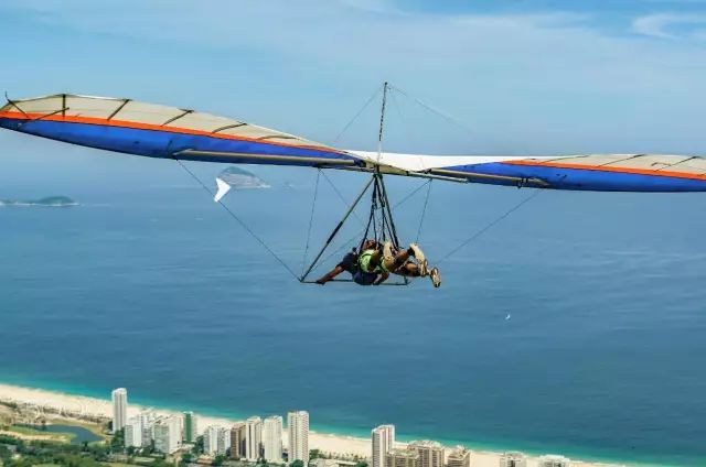 你知道里约的最佳打开方式是什么吗?那就是从里约南部的Sao Conrado山滑翔而下,在湛蓝的空中,想象自己如雄鹰展翅一般,俯瞰下方闪着波光的海洋和里约的全景,翱翔于云海之上,山谷之间,最后降落在山下的黄瓜海滩上。