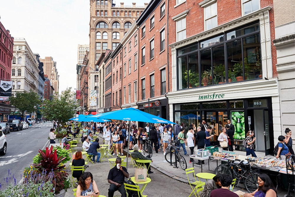 纽约旗舰店被设计成了沉浸式体验门店,Innisfree有意将室内温度调低,以模仿在海边被海风吹拂的感觉,同时,店内飘散着品牌代表性的绿茶香味。Innisfree共有九条产品线,每一条都以在济州岛上发现的天然原料为基础,店铺内用装置对每种原料的功效进行展示,从兰花到熔岩海水,再到大麦。店内有一个独立分割的名为“温室”的空间,在里面,品牌会举办美妆护肤大师课程及活动。