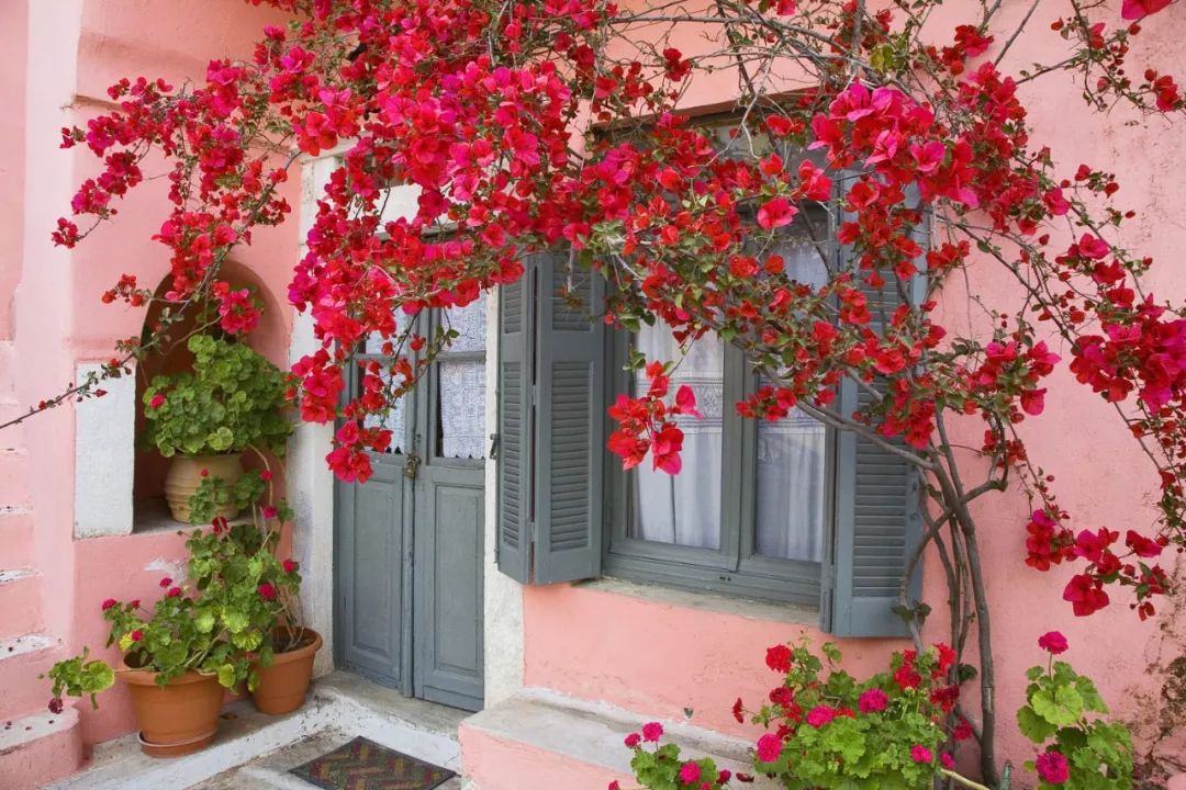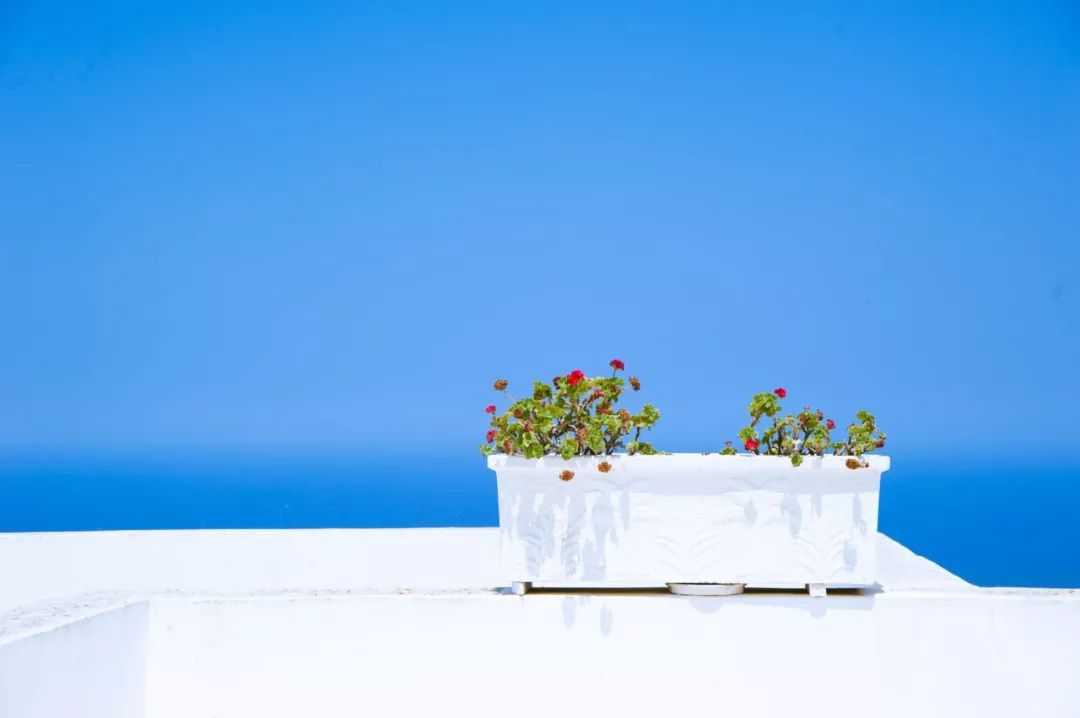 在米科诺斯岛,最常见的颜色就是充满地中海风情的蓝与白。这种蓝,非常纯粹,干干净净,一点儿都不扎眼,看着极为舒服;这种白,明亮又轻快,像极了明媚的日子中云朵的颜色。这里,一排排的房子都被漆成了蓝色与白色,唯一的点缀就是每家每户的木质阳台里那些盛开的鲜花。
