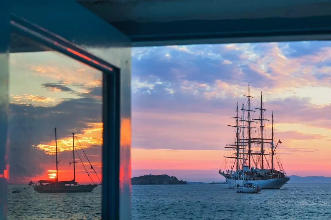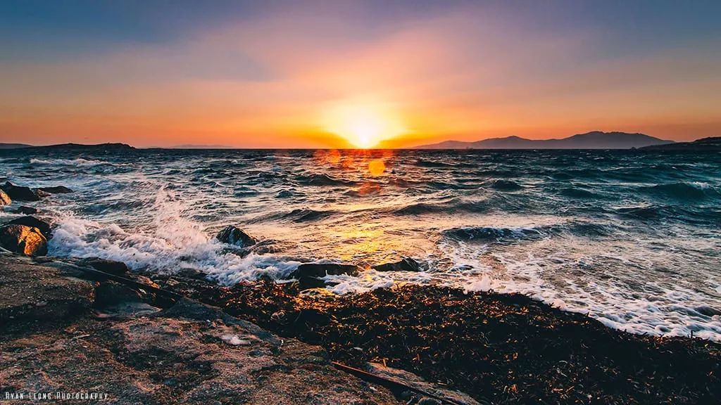这里更有不输圣托尼里的日落,360°毫无死角,无论在岛上哪个角落,都能将落日余晖尽收眼底;