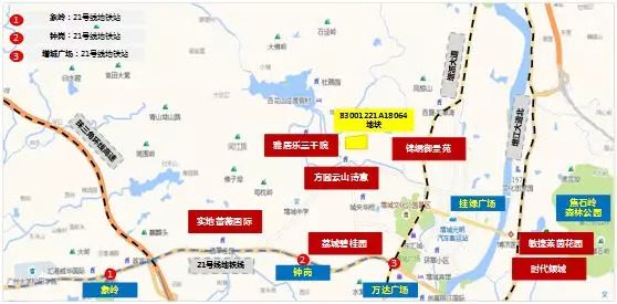 区位交通:地块位于增城荔城板块,距离在建地铁 21 号线增城广场站直线距离 3.3 公里,可通过地铁、广增线(大巴)直达广州市天河区,未来交通便利度尚可,但由于距离广州市区距离较远,通勤耗时较长。