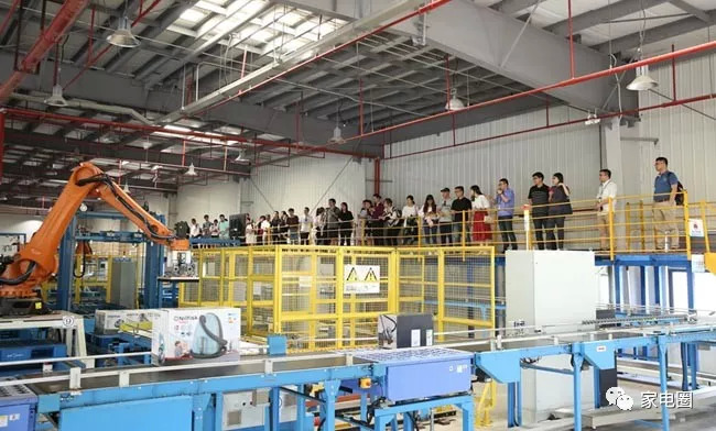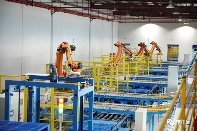 在美的清洁电器工厂,家电圈看到,与传统的小家电制造企业,一条条生产线并排运行,从零部件到整机一条线走到底“截然不同”的是,超过十几条流水线上完成的10多种型号吸尘器同时被输送到一个流水线上,然后由流水线上的“鹰眼”自动误别,送进不同的轨道之后,由机器人手臂自动抓取,按照相同型号自动堆码在一起后,再送至仓库。整个过程涉及“识别、分拣、抓取、堆码、入库”等多个流程,看不到一个员工,全是机器人在自动运行。