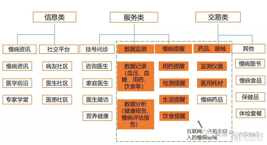 互联网慢病管理企业分类示意图(来源:艾瑞咨询,动脉网有部分删改)