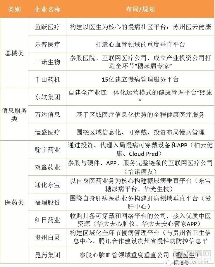 14家涉足慢病管理的上市医疗企业布局(不完全统计)