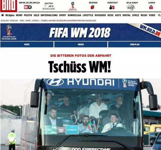 德国《图片报》发文“苦涩的启程(回家)照片,再见世界杯”。所配照片显示,球员满脸沮丧。