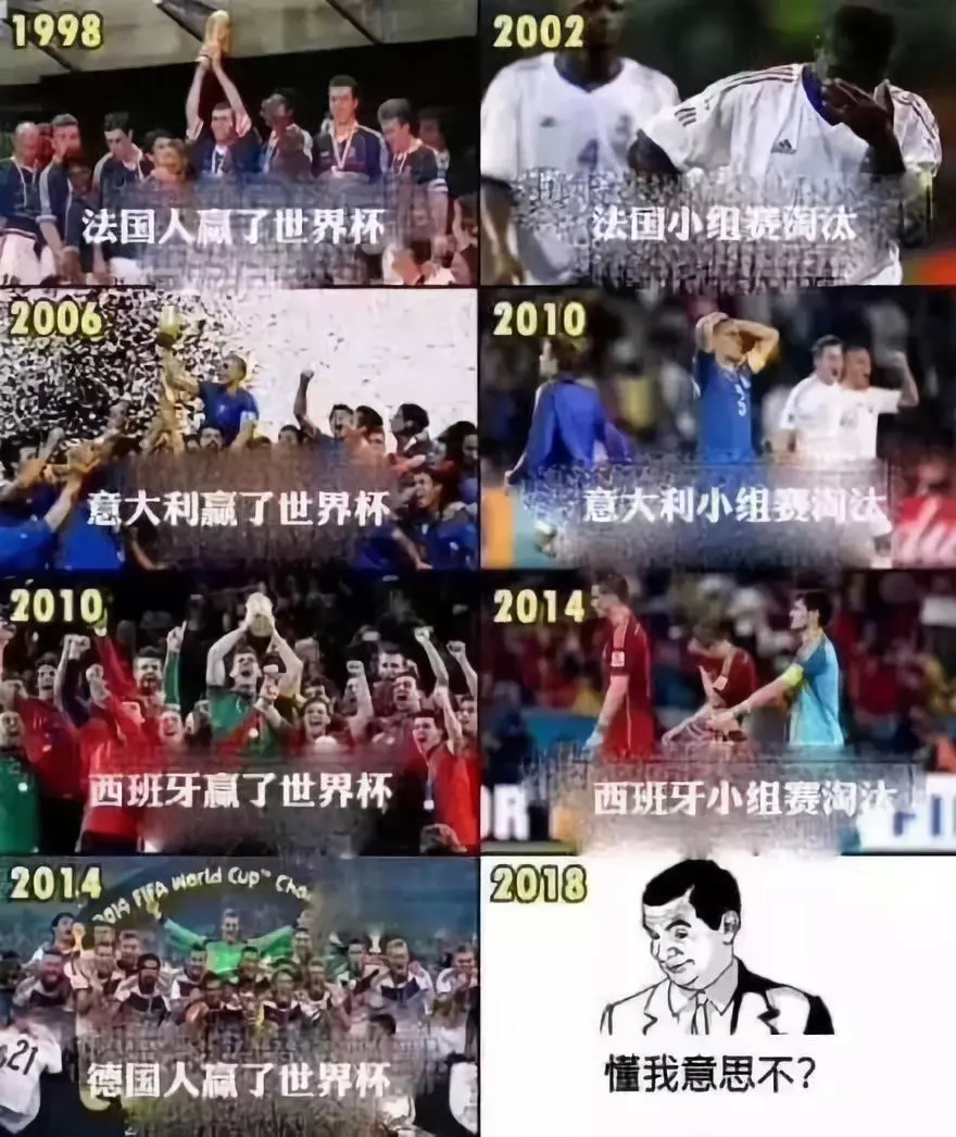 2006年世界杯冠军意大利,2010年小组赛出局;2010年世界杯冠军西班牙,2014年小组赛出局;2014年世界杯冠军德国,2018年小组赛……