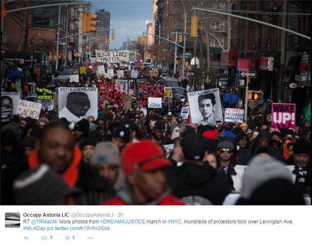 当天多地的抗议和游行活动以标签#ReclaimMLK在社交网络上传播。