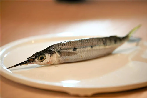 针鱼体型不大,身长一般在20CM左右,然而当季的针鱼肉质白嫩清透,只需用一点盐腌制,再香煎或者油炸,或者直接煮汤,就是一道无比鲜美的时令菜。而针鱼制成刺身,也非常鲜甜,吃起来爽中带甜。