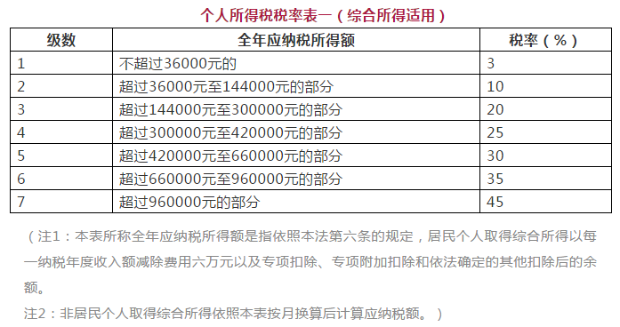 草案给出了“起征点”(基本减除费用标准)上调后的新版税率表。过渡期内,个人所得税税率将按照新的税率表执行,按月换算后计算缴纳税款,并不再扣除附加减除费用。