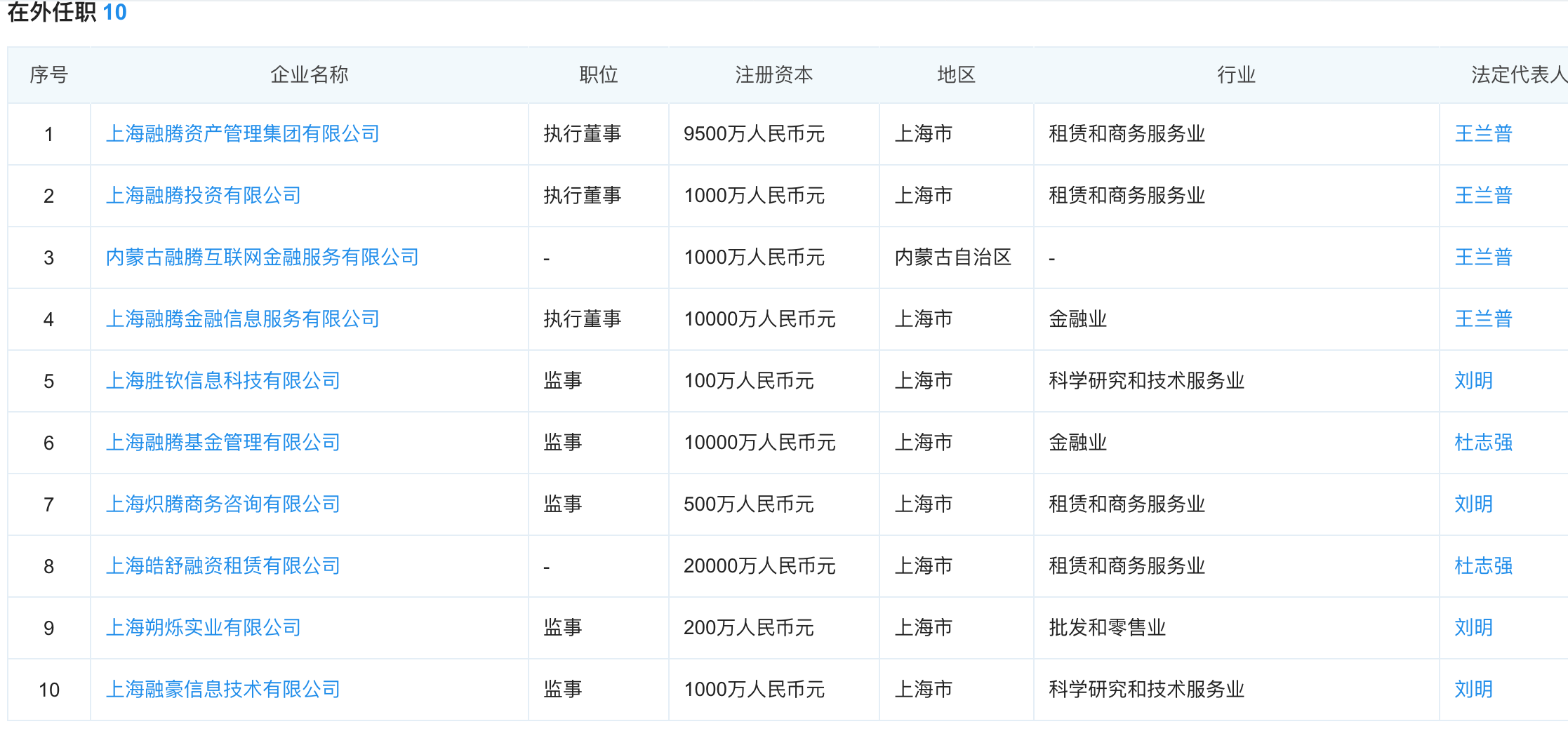 小诸葛金服隶属于上海融腾金融信息服务有限公司(下称 “上海融腾”)。企查查数据显示,上海融腾成立于2015年1月,注册资本1亿元,法人及最终受益人均为融腾集团控股股东王兰普。王兰普在十家企业任职,不乏商务及金融业公司。