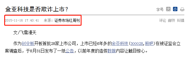 证监会2018年6月26日要闻披露,金亚科技为了达到发行上市条件,通过虚构客户、伪造合同、虚构回款等方式虚增收入和利润,骗取首次公开发行(IPO)核准,这些正是红周刊发表的系列文章当中曾提到有争议的点。红周刊作为证券专业媒体,一直倡导价值投资、理性投资,站在投资者和证券法律法规的角度,对有重大疑问的上市公司会客观理性地从专业媒体的角度发声,提示投资者注意风险。