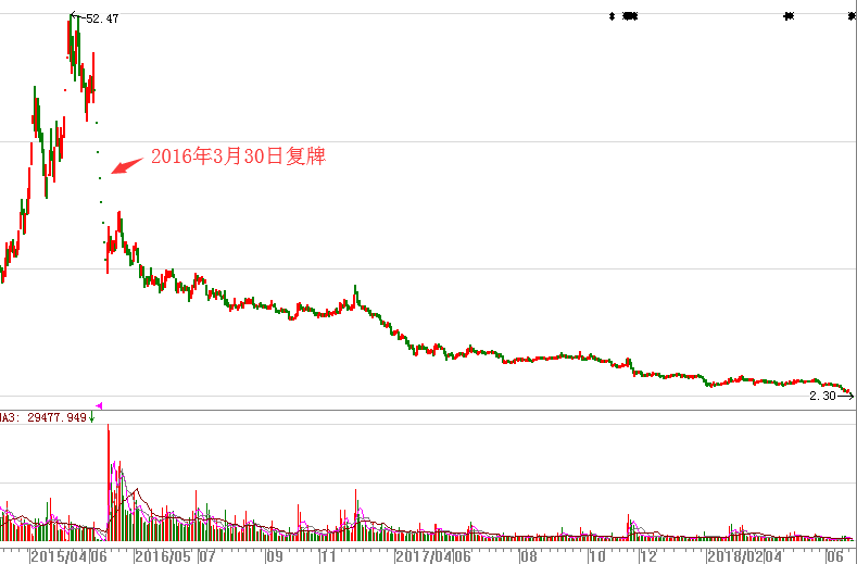 2015年6月9日*金亚停牌自查,到次年3月30日复牌,中间经历了董事长辞职、注销全资子公司、终止重大资产重组事项、对2014年年度重大会计差错更正等事件。复牌后,连续5日跌停,股价其后积重难返、一路下行,由停牌38.35元/股,跌至如今的2.3元/股,跌幅高达94%,而*金亚下跌之路还远没有结束。当主力机构赚的“盆满钵满”高位离场后,剩下承担苦难的往往就是中小散户。