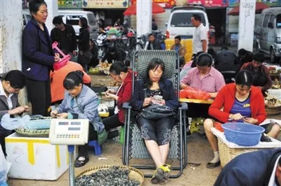 一大早,昆明市木水花野生菌批发市场已开始繁忙起来。