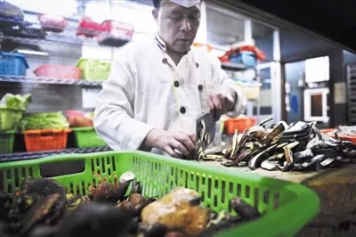 被买回的野生菌正在昆明某饭店后厨中加工。