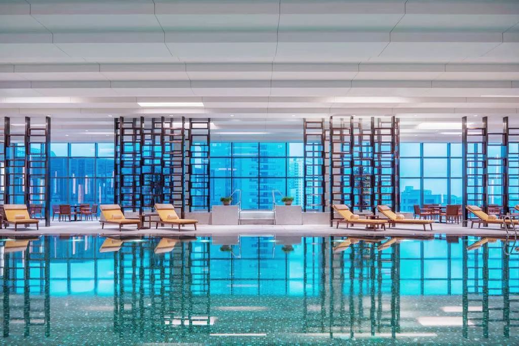 酒店度假里,我不会错过的项目是游泳和健身,我对泳池格外挑剔,我喜欢的是带有自然采光的泳池,并且喜欢在清早或者晚饭时间(这段时间人少),比如上海嘉定喜来登酒店和上海五角场凯悦酒店的泳池。