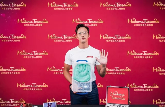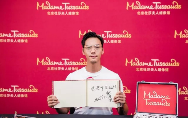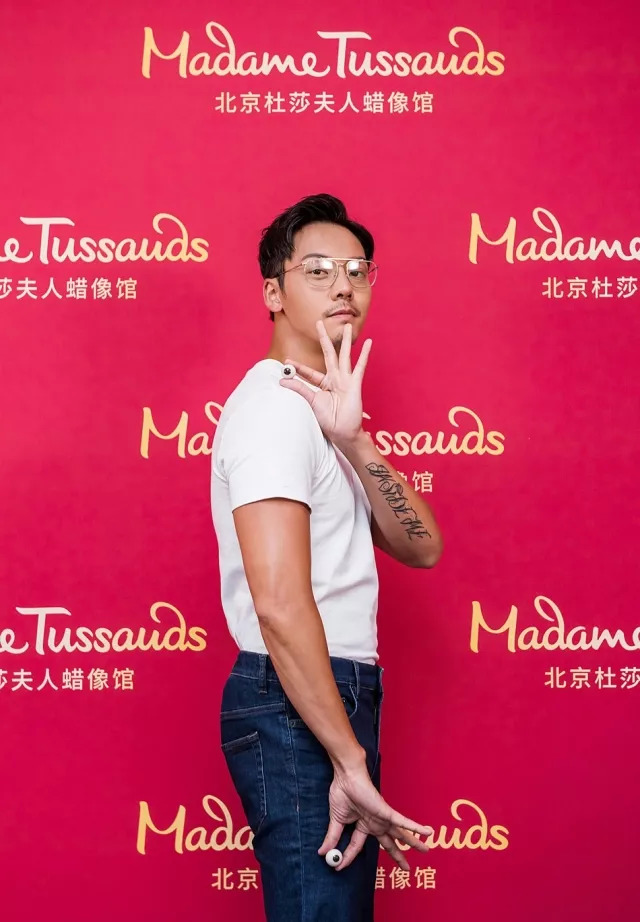 陈伟霆白T牛仔裤亮相蜡像馆