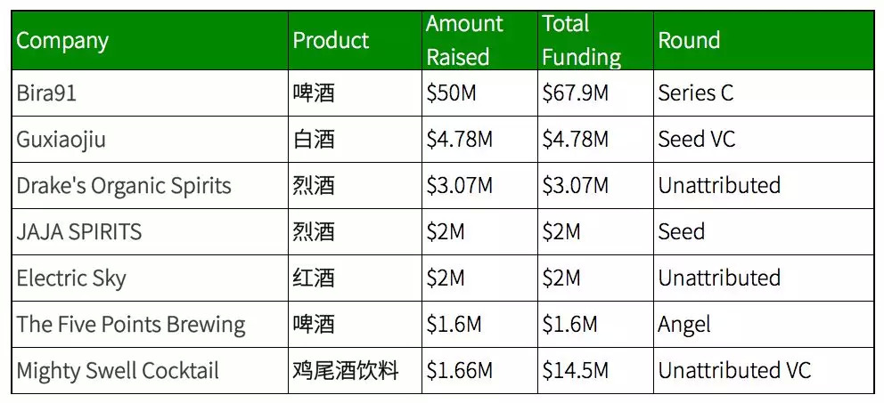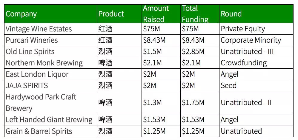 表:部分获得较高融资额的年轻化酒类消费品品牌公司,数据来源:CBInsights,FoodPlus整理