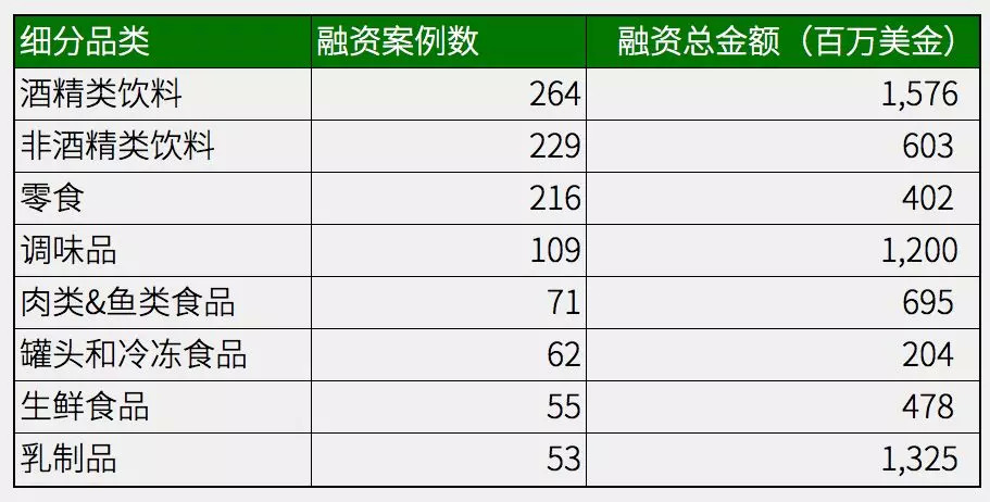 从投资案例的数量来看,酒类、非酒精饮料、零食是资本在食品行业最关注的前三个领域。
