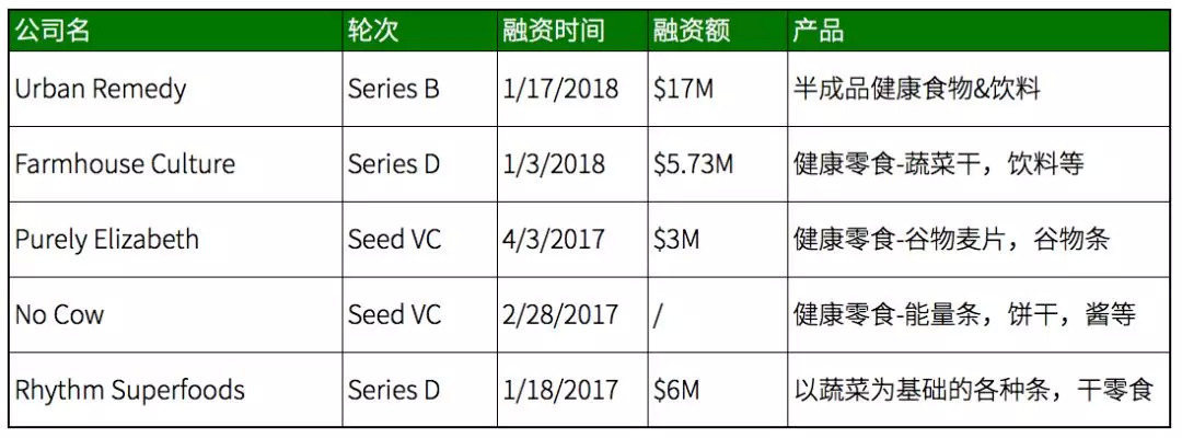 而这一点,在零食这个品类里面有直接的体现。在过去一年全球范围内融到较多资金的零食品类的创业公司中,绝大部分公司的产品都把“健康”“营养”等标签作为产品在定位、营销环节呈现的核心要素。