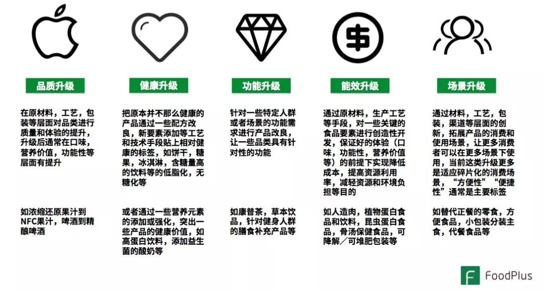图:食品消费品品牌实现品类升级和创新的一些思路。来源:FoodPlus