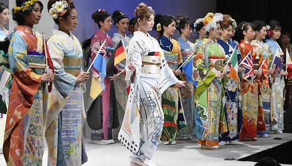 过去四年中,该计划联合日本各地的和服、织物店,陆陆续续推出了100个国家主题的和服,展示和服的模特则是来自日本高中的普通学生。这个计划不但让日本本土的匠人商铺、学生们都联合起来,制作国家主题和服的形式也能引发更多其他国家的关注。