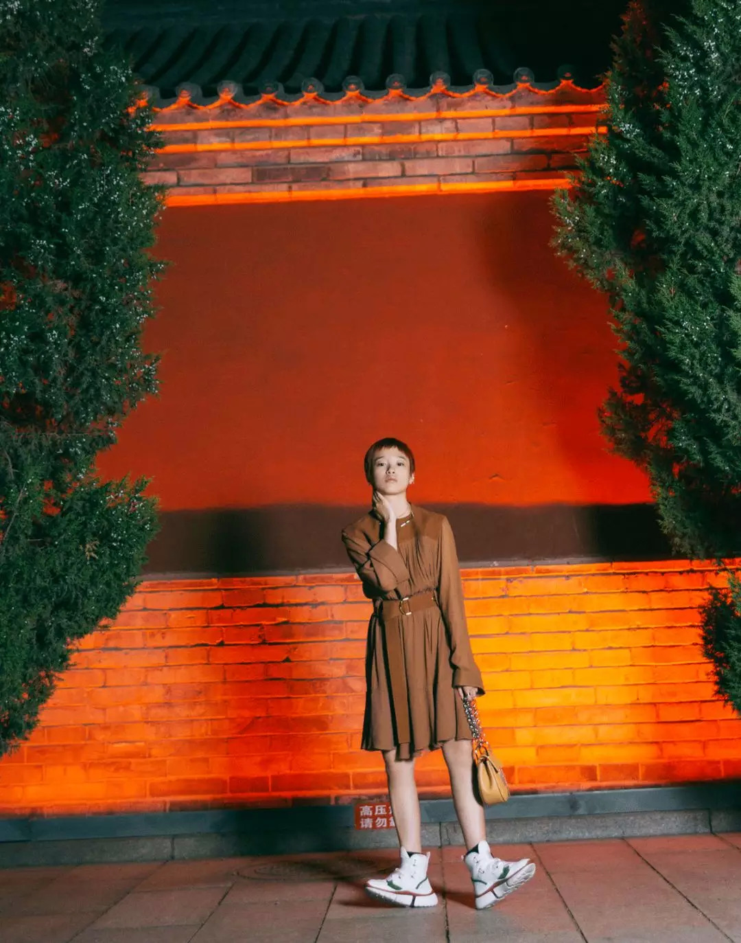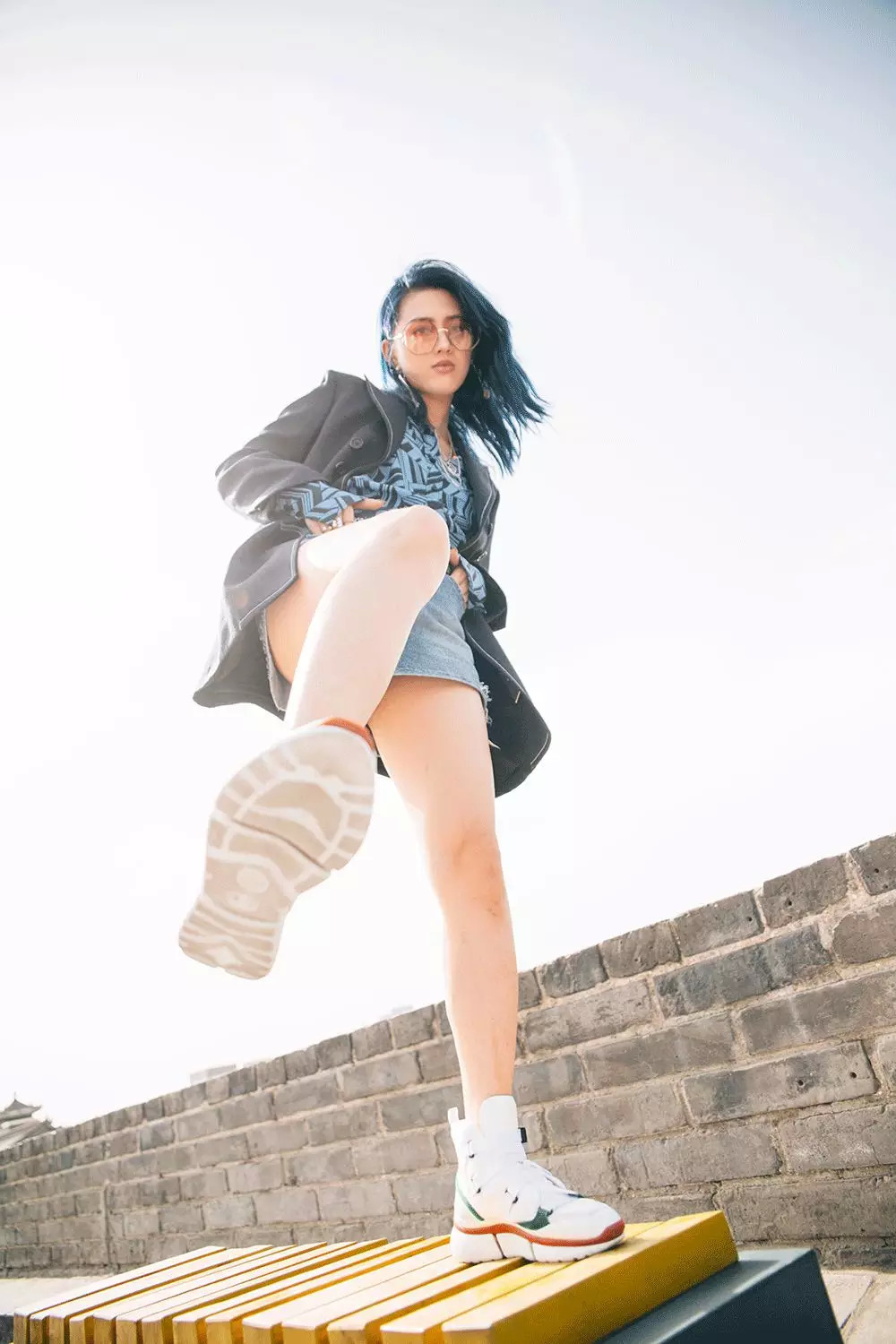 在这里给我当模特的是Avafoo(微博id:@AvaFoo),高领条纹衫、阔腿裤加运动鞋,蛮潇洒的。