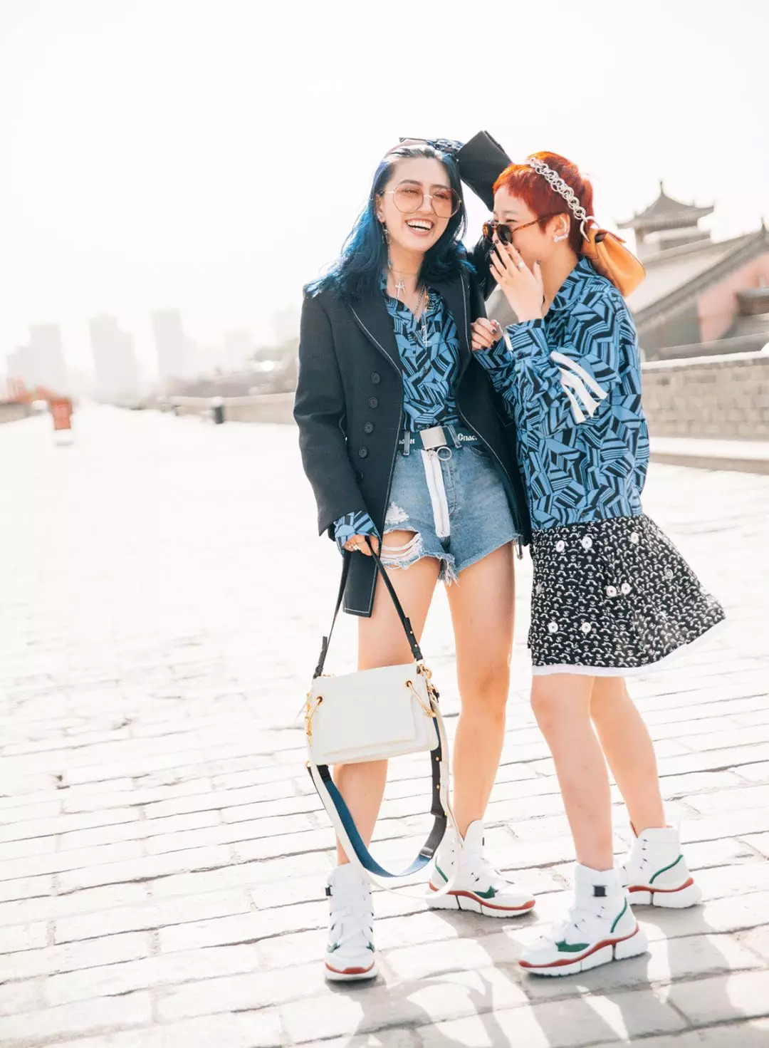 就像我这两个美女朋友一样,李10和Rico,用同样的印花配出闺蜜装,攻受分明,怎么拍都有爱。