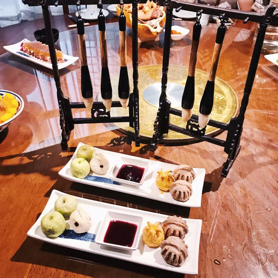 第二个网红景点是有这个毛笔酥的醉长安餐厅。这毛笔是个甜点,之前听说只适合拍照,不太好吃,但我觉得味道还行。