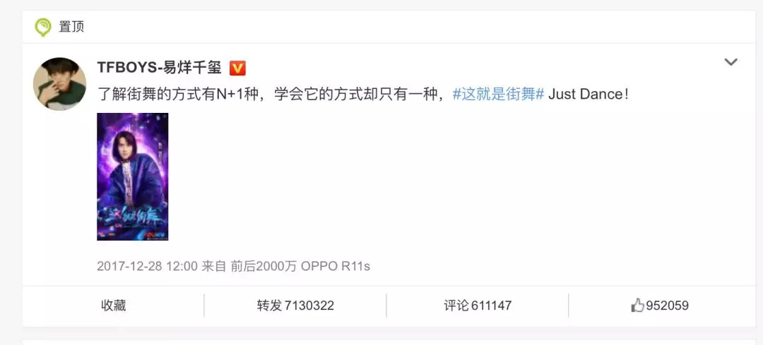 《我的时代和我》易烊千玺篇播出前,他还参加了另一档热门网综——《这就是街舞》。作为导师的易烊千玺也在自己的微博里推荐这个炫酷、热烈、充满活力的舞蹈综艺,而这条微博的转发量超713万,评论量超过61万。