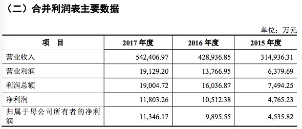 从招股书披露的业绩看,良品铺子近几年处于良性增长态势。2015年-2017年,良品铺子的营业收入分别为31.49亿元、42.89亿元和54.24亿元,净利润分别为4700万元、1.05亿元和1.18亿元。其竞争对手三只松鼠2015年、2016年、2017年1-6月的营收分别为20.39亿元、44.08亿元、28.81亿元。