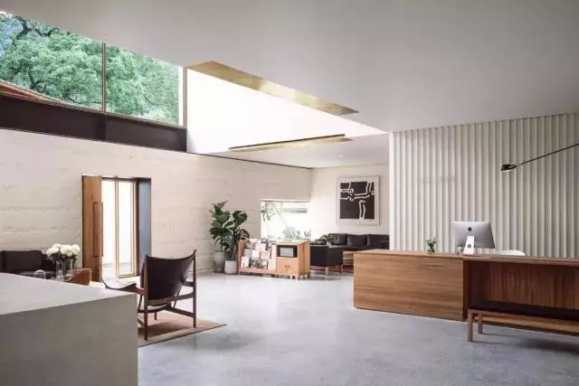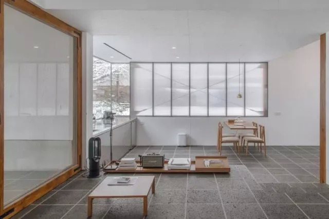比如,大厅东北角的休息区,你会比较简单地以为是沙发放置在那里,所以坐下来就获得一种放松。而事实上,因为在靠近低矮的转角窗观望凉廊和庭院的同时,又能透过西侧巨大的高窗看到坡屋面的青苔、树影以及洒落的阳光,这些景象会领着你,会给你一种远远的惬意。沙发舒适的触感与视觉感知对应,才让你真正获得了休憩。