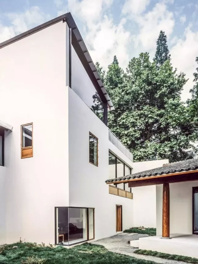 整个碧坞村都由老房改造,保留了原有的木架构,重新做了墙体屋面及门窗,最角的落地门窗的形式也是莫干山首创的,随后基本成为了莫干山非常风行的建筑格式。